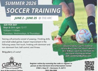 The City of Clermont is offering summer soccer training at the Clermont Arts and Recreation Center for boys and girls ages 12-17.