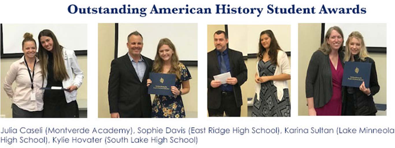 Susan DeHart, chairman of the Outstanding American History Student Awards committee, introduced each student and their history teacher presented an overview of the student’s love for American History.
