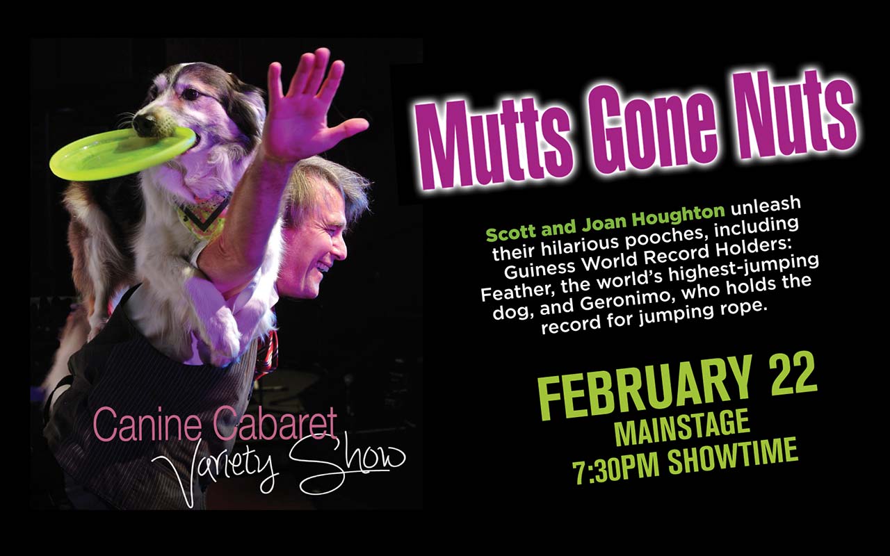 Back by popular demand, Mutts Gone Nuts, a smash hit featuring 10 of the world’s most talented four-legged performers and their equally-talented trainers.