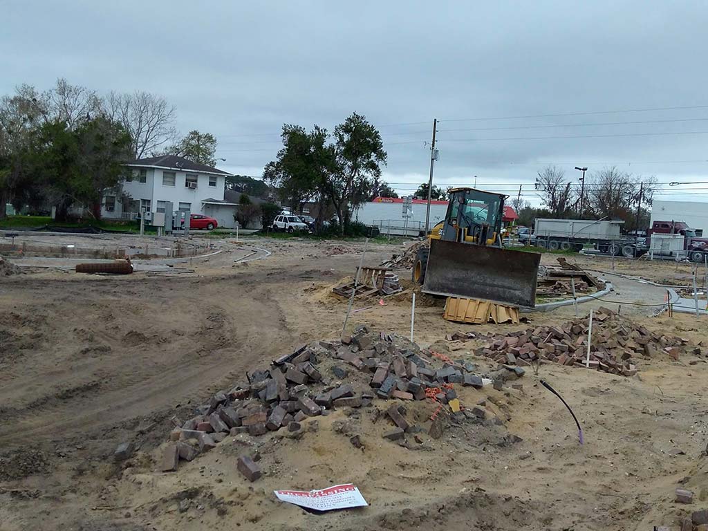 Yet to be completed is an amphitheater, benches, picnic tables, shade structures, thousands of pavers and a full landscaping plan. Most of the borders for the pavers and structural foundations are in place. South Lake Avenue remains closed but has been repaved using existing pavers from the City stockpile. The reused pavers are not dated or otherwise imprinted but clearly have a lot of years experience carrying traffic and pedestrians in Groveland.