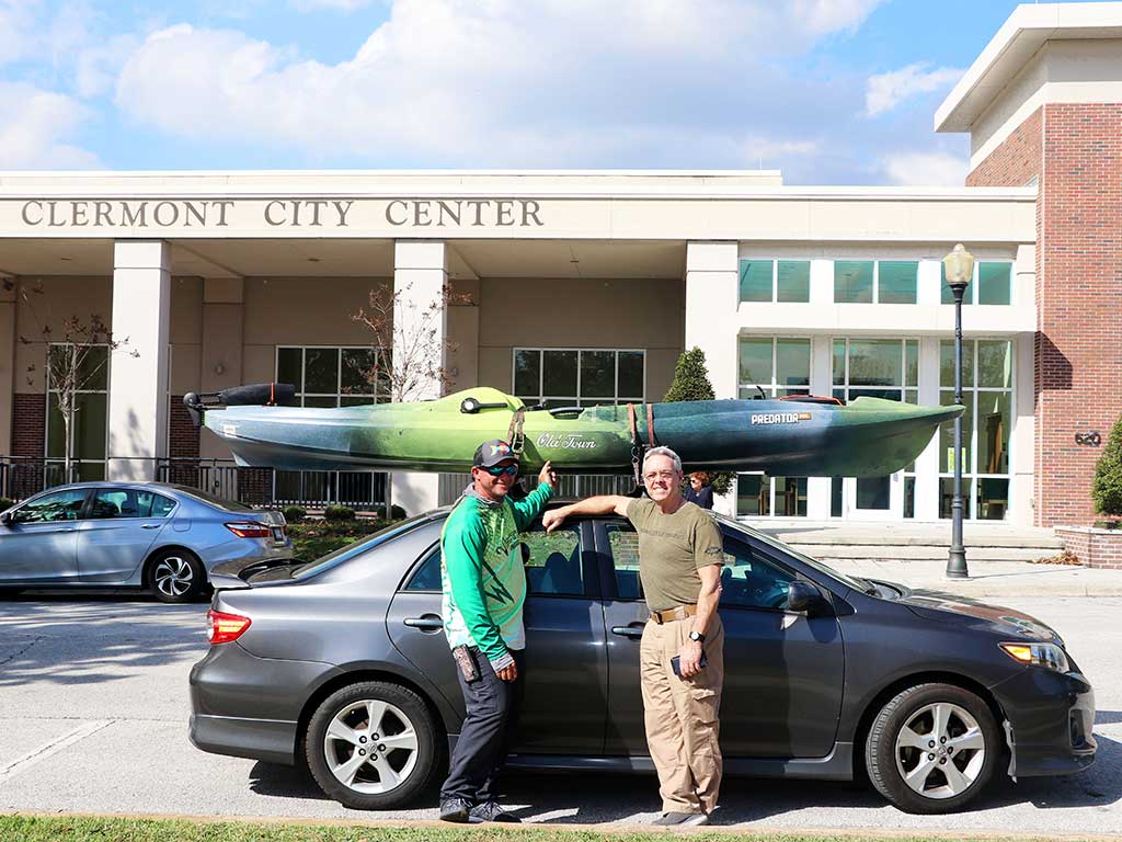National Kayak Bass Fishing Tournament: Chad Hoover, KBF Tournament President and Joe Haubenreich, the National KBF Tournament Series Director and KBF COO were both here in Clermont to organize and supervise the tournament. While here, they also shared live and recorded tapings for their national TV show. They came here to Clermont from their Hendersonville, TN headquarters. KBF has partnered with kayak fishing clubs across the United States with events from north to south and east to west coasts. These affiliated clubs hold their own competitions, yet they also serve their local communities, introducing the sport of kayak fishing to individuals, families and schools.