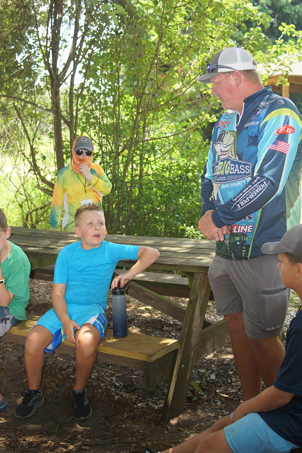 On Wednesday, the 20 students, plus staff, were joined by a special guest, Lake County’s own Tim Frederick. Frederick has been a Fishing League Worldwide (FLW) Tour Angler for five years now and is the official fishing ambassador for Lake County tourism. As he told campers, it’s his job to help bring fishermen and fish tournaments to Lake County lakes.