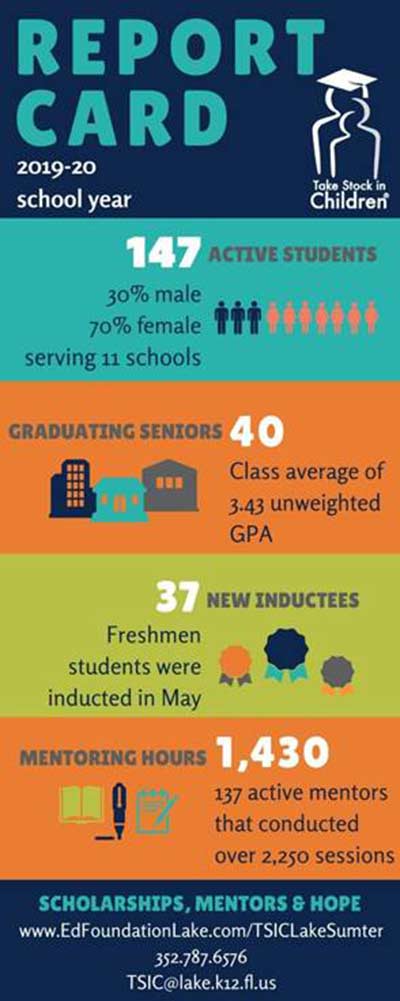 Each year, TSIC programs in all 67 Florida counties are graded on how well they fulfill the requirements of the program which includes ensuring mentors meet with students, helping students prepare for college, and managing data. This is the second year in a row that the Lake and Sumter program received a Gold scorecard, the highest level a program can receive.
