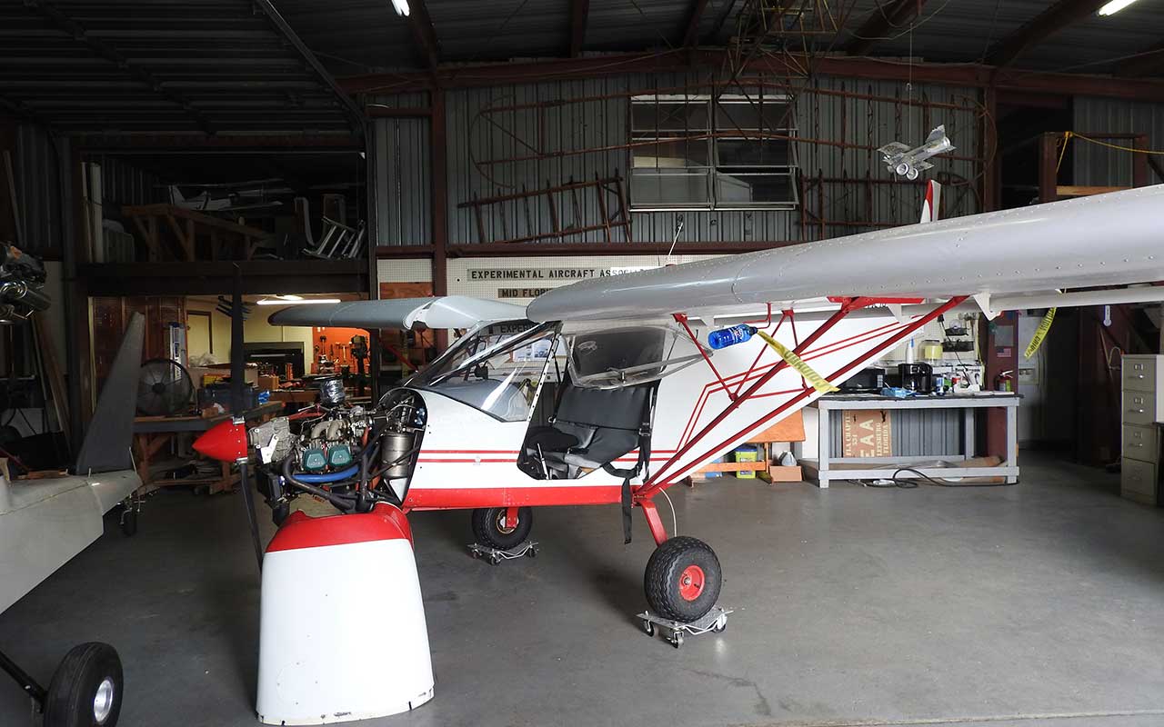 Chapter 534 has several aircraft building projects going on in the hangar. The planes being worked on are a Cessna 150 which is about to undergo an engine overhaul, a SeaRey amphibian kit being assembled, 1929 plans built Pietenpol Air Camper, and a Murphy Rebel having aluminum skins applied to its wings.