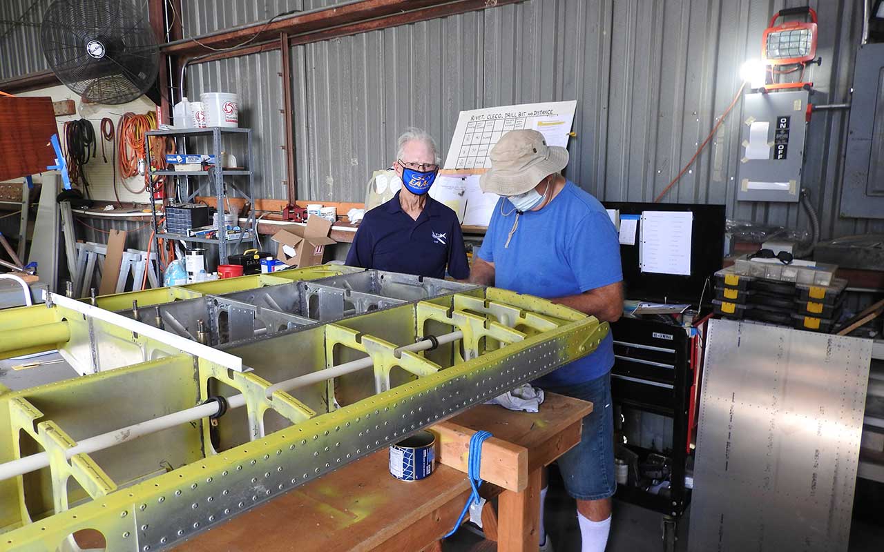 As the stay- at- home recommendations loosened, a few of our adult members who were working on several different aircraft building projects in the EAA hangar, began to show up. They wore masks and tried to maintain social distancing as much as possible.