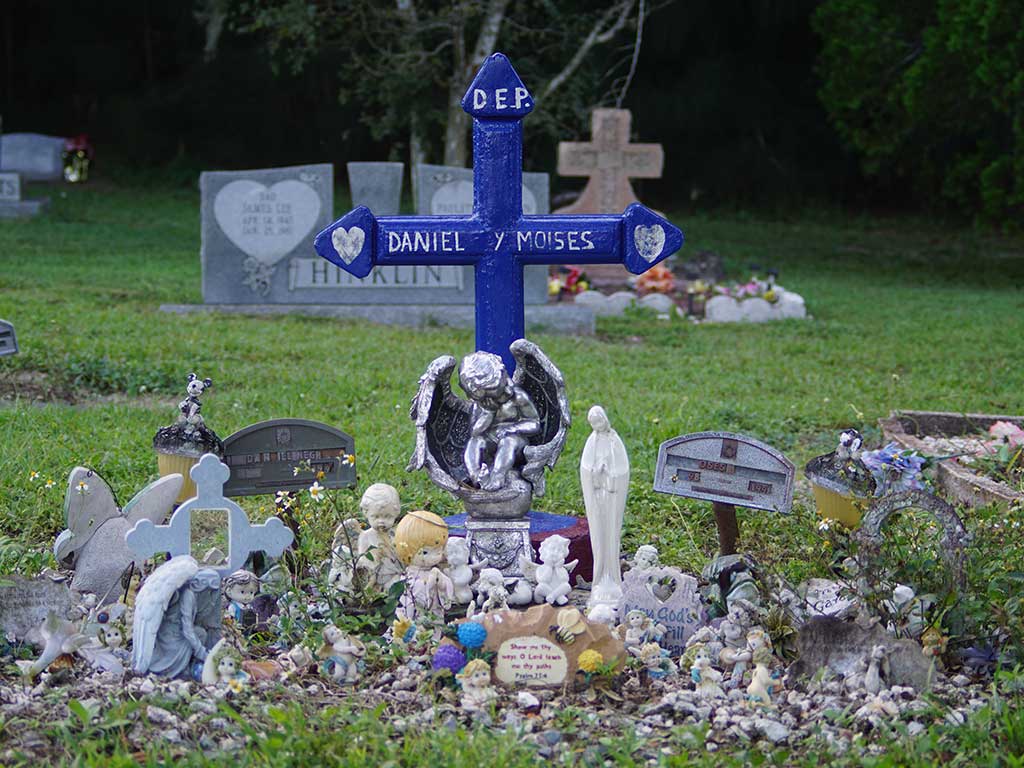 Speaking of the assortment of grave decorations, Martinez says “Everyone … they’re personalizing the graves, according to the family. Sometimes, they put things on the grave, then forget about them.” Pointing to an elaborately decorated and immaculately maintained grave near her son’s, she pointed out that members of that family come out every few months, spruce things up, and basically have a picnic.