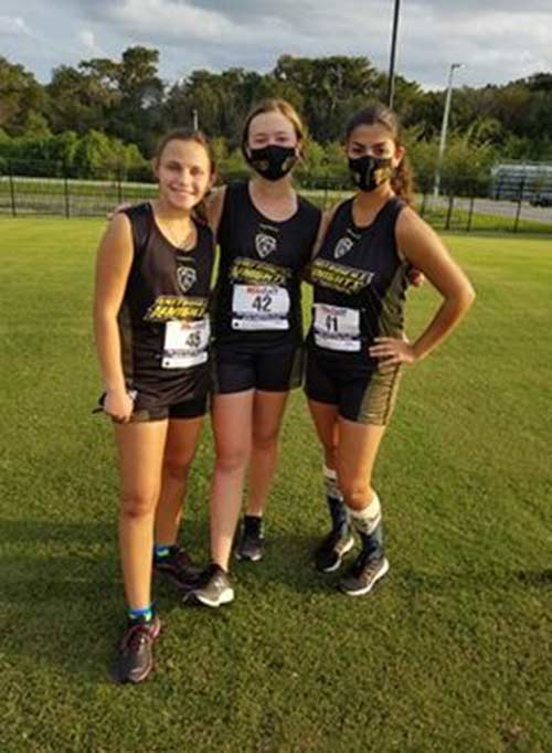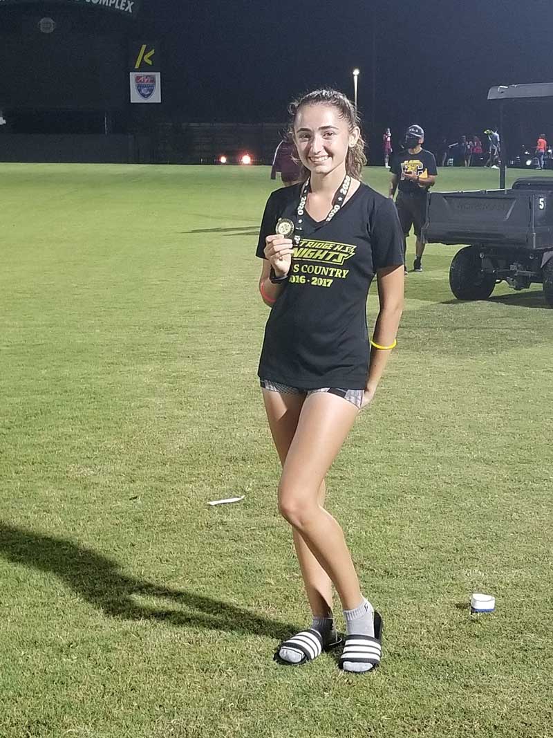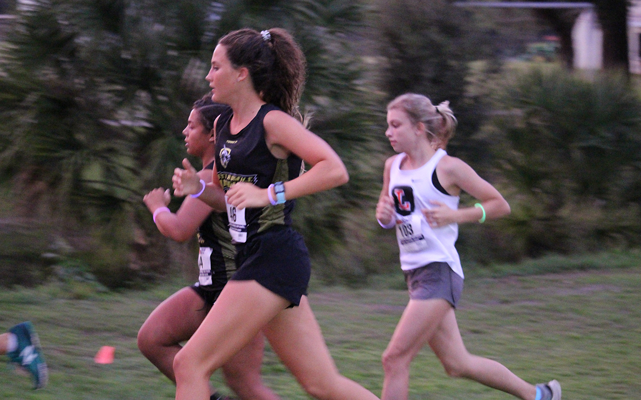 Girls from seven different schools throughout Central Florida competed in the JT Memorial Cross Country Race on Friday evening. Senior Mackenzie Hill led the Knights as she swiftly moved along the soccer fields of Austin Tindall Park. In her final regular-season race of her high school career, senior Mackenzie Hill led the entire field of 46 varsity female runners. Mackenzie was spotted finishing the first of two loops in a close race with two runners from Holy Trinity Academy. By the end of the second loop of the race, Mackenzie had opened up a considerable distance between herself and the Holy Trinity runners.