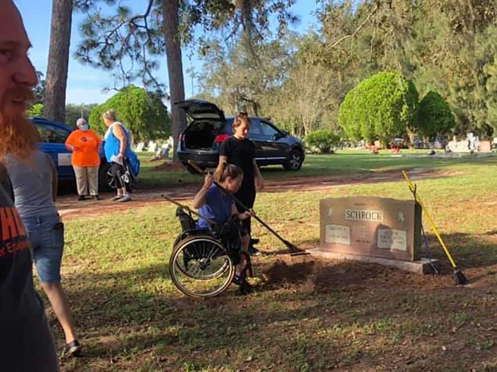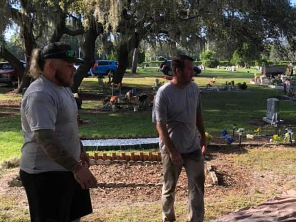 Former mayor Barbara Krull was present working and emotionally remembered “losing my husband this year.  He’s right here and when my time comes, I’ll be right next to him.”  Mascotte Police Department Community Outreach Director officer Kenia Abreu came by several times to offer support and remind everyone to attend the “Cruiser For A Cause” event at the Tedder Civic Center.  Mascotte City Council was also represented and worked all morning.  Council Person Brenda Brasher commented, “dozens of Mascotte residents and families worked together to bring some beautification to the Mascotte Cemetery.”