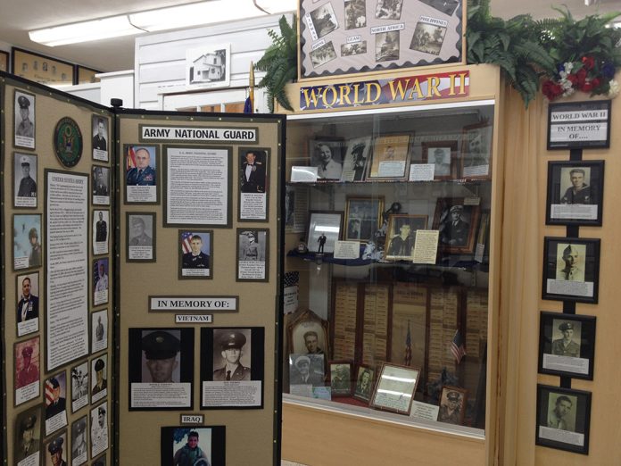 Shown is a portion of six panels, divided into the various branches of military service, which feature local veterans. A work in progress, veterans are still encouraged to bring in their pictures, in military uniform, to add to the display.