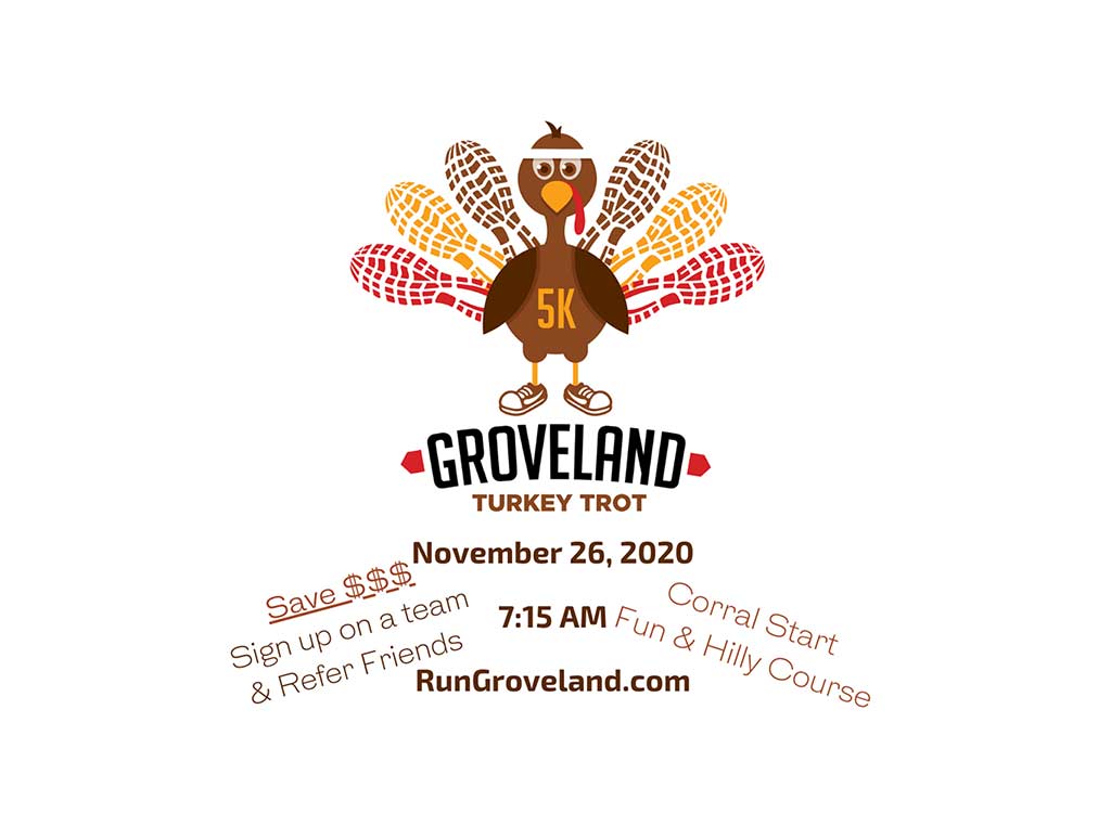 In just a couple of weeks, the first-ever Groveland Turkey Trot will take place on Thursday, November 26th. The event presented by Sports Medicine Institute takes place Thanksgiving morning at the new Cherry Lake Park (131 Wilson Lake Parkway – Groveland, Fl. 34736) with the first group of participants starting at 7:15 am. What a great way to burn off as many calories as possible before the bird comes out of the oven! Participants will experience a safe and social distanced start & finish.