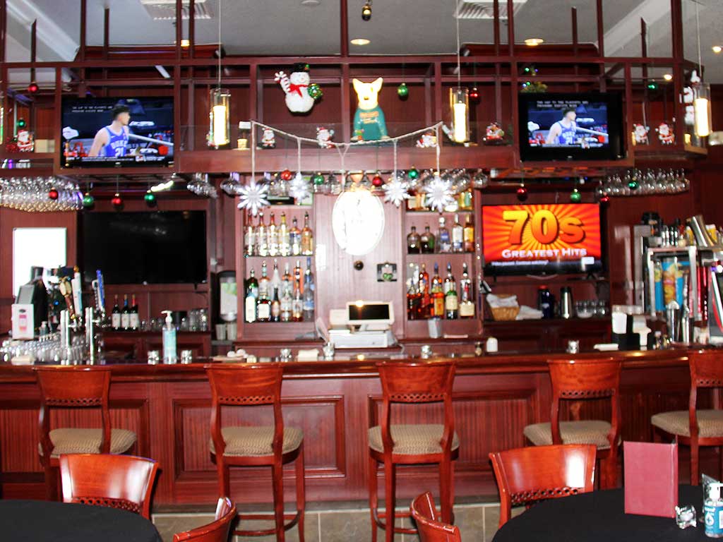 The restaurant features a wide variety of Italian, Mediterranean and American foods. Choose from an assortment of appetizers, soups, salads, sandwiches, pizzas, wings, flatbreads, burgers, tacos, falafel, steaks, desserts. Domestic and Imported beers, wines and mixed drinks are available. The Jack Daniels Burger has already been identified as “the Diners Choice”. The menu also has a selection of vegan burgers and foods with gluten-free options, as well as freshly prepared desserts. There is a kid’s menu for the younger set. The goat cheese flatbreads, the Black & Blue Burger, and the Haddock Fish & Chips are excellent choices.