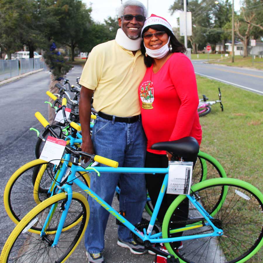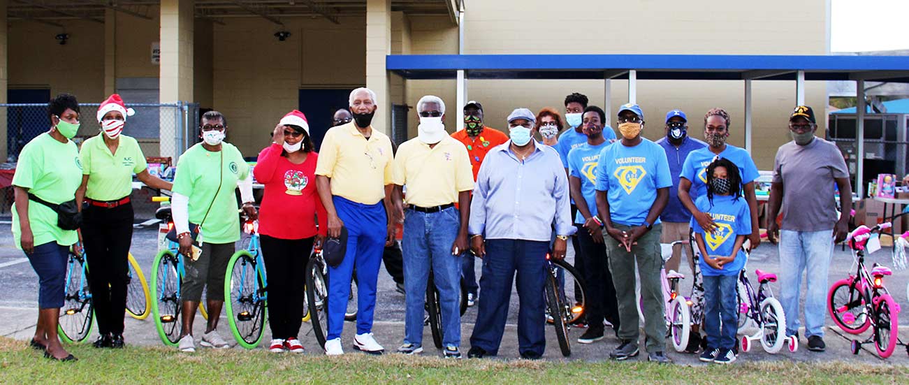 Christmas Toys & Holiday Treats: With an attempt to modify this event due to COVID they had hundreds of people on foot, as well as dozens of cars filled with families, come through the organized-lines to get toys, treats, hamburgers, hot dogs, chips, cookies and many extra gifts. Forty-five new and slightly used bicycles were given to good boys and girls via a free raffle. A DJ played festive Christmas music during the event.