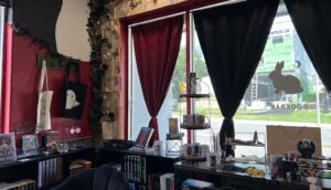 This spooky, fantasy-inspired café offers guests a one-of-a-kind bookish escape. Visitors can enjoy specialty handmade coffee and tea drinks, pair them with a selection of sweet treats, and browse a curated collection of books and bookish merchandise.