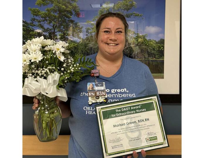 Orlando Health South Lake Hospital recently recognized Marissa Green, RN, with the prestigious DAISY Award, an honor that celebrates extraordinary nurses who provide exceptional and compassionate care to their patients.