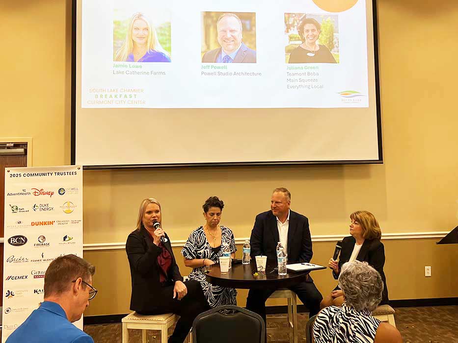 Panel Board Members Jeff Powell (Powell Studio Architecture), Jamie Lowe (Lake Catherine Farms), and Juliana Green (Teamont Boba of Clermont/Main Squeeze Clermont/ Everything Local Co), shared inspiring stories about their journeys from employees to successful business owners and how the Chamber supported their paths to entrepreneurship.
