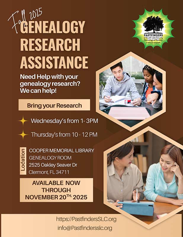 Sometimes, all you need is a little guidance. Pastfinders provides Genealogy Research Assistance at Cooper Memorial Library two days a week until November 20th. Bring along any information you have and connect with our volunteers on Wednesdays from 1 to 3 pm and Thursdays from 10 am to 12 pm. We offer access to Ancestry.com in the genealogy room. Regardless of your family’s origins, we have research materials available for you. If your family has been in the area for generations, we have plenty of local materials, including digitized newspapers and yearbooks. We invite you to visit the Genealogy room on the second floor of Cooper Memorial Library for personalized assistance with your research. Don’t forget to register for our Family History Research classes, which cater to researchers of all levels. Both Genealogy Research Assistance and Family History Research classes are free and accessible to the public. Check us out on Facebook at PastfindersofSL and discover more on our website https://PastfindersSLC.org