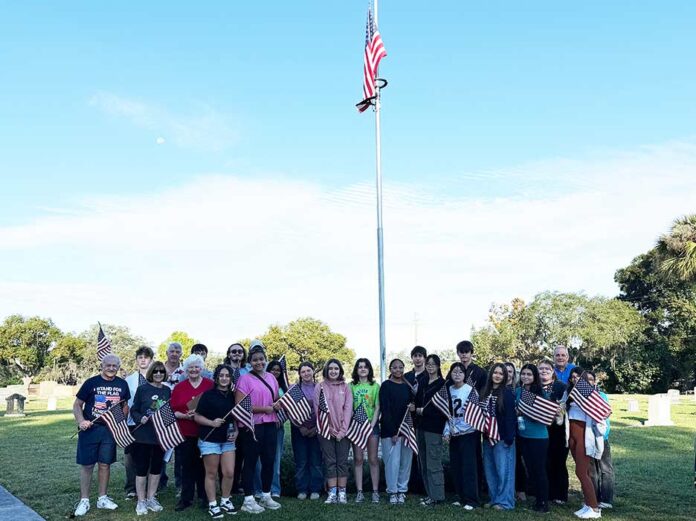 This Veterans Day, the quiet grounds of Oak Hill Cemetery in Clermont came alive with color and meaning when hundreds of American flags were placed beside the resting places of those who served the nation and the community — a stirring tribute organized by Chuck Seaver, president of the Kiwanis Club of Clermont.