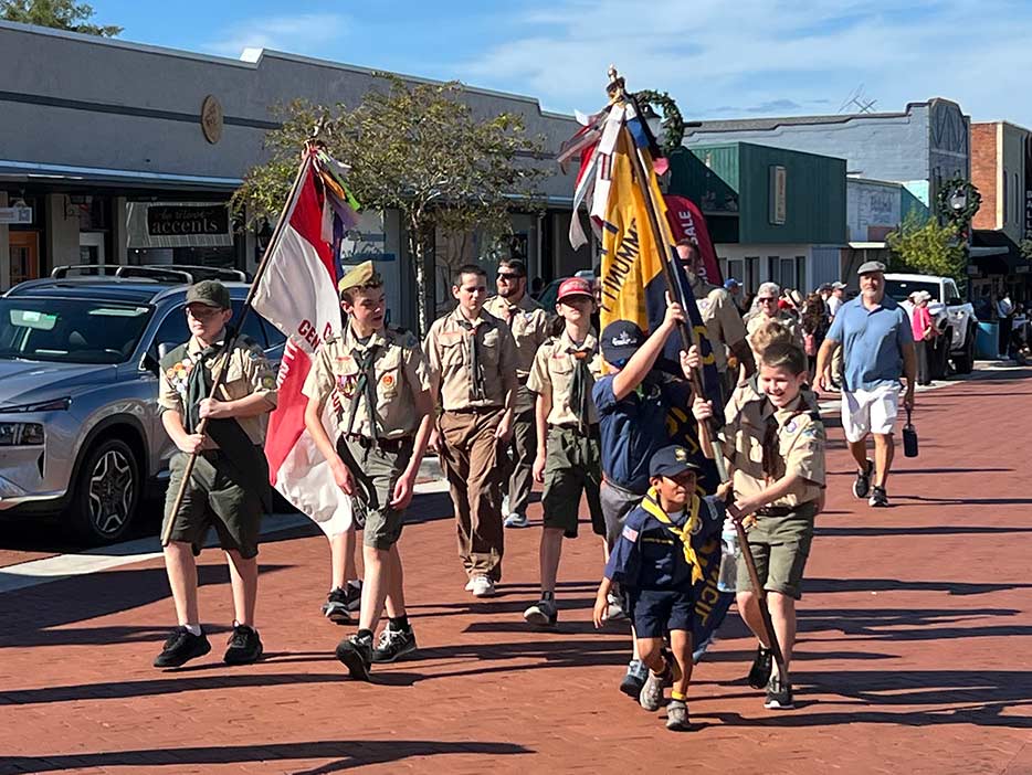 The morning began with the Veterans Day Parade, which stepped off at 10 am with marching scout troops, civic organizations, and local leaders as they made their way down Montrose Street, waving flags and cheering as the crowd responded with applause and gratitude.