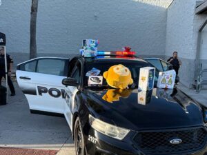 The toy drive also provides an opportunity for the police officers to interact in a positive manner with the community members of all ages. Shoppers and children, along with their parents, stopped by the donation booth to not only drop off a toy but also enjoy a few holiday sweet treats and take advantage of a photo opportunity with the officers and the patrol car that was set up in true holiday fashion.