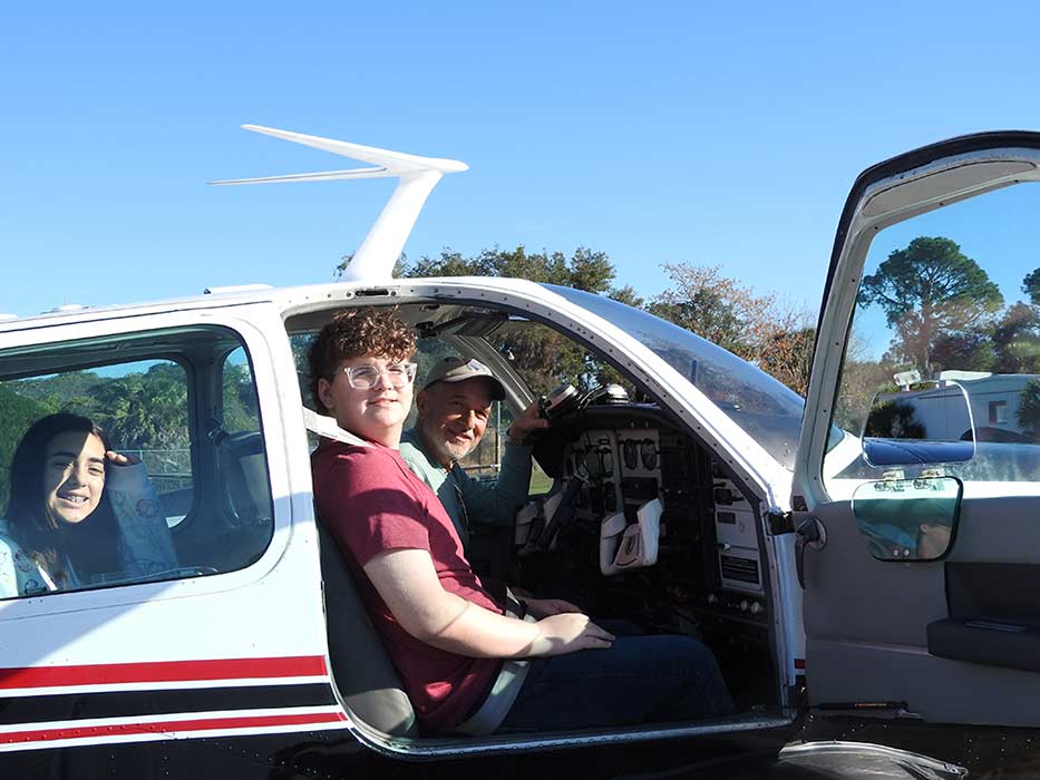 When they return to the hangar, the young flyers will receive a commemorative certificate and an official log book both signed by the pilot who took them up. They will also receive, at no charge, an online Sporty’s Learn to Fly Course which will teach them what they need to learn if they wish to become a private pilot. This course will prepare them to take the Federal Aviation Administration written test they will need to pass.