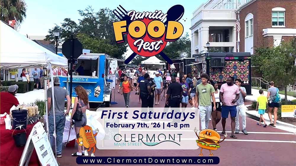 Downtown Clermont will come alive on Saturday, February 7, as the popular First Saturday Family Food Fest welcomes residents and visitors for an event filled with food, music, and family-friendly fun. The event runs from 4 pm to 8 pm and takes place throughout historic Downtown Clermont.
