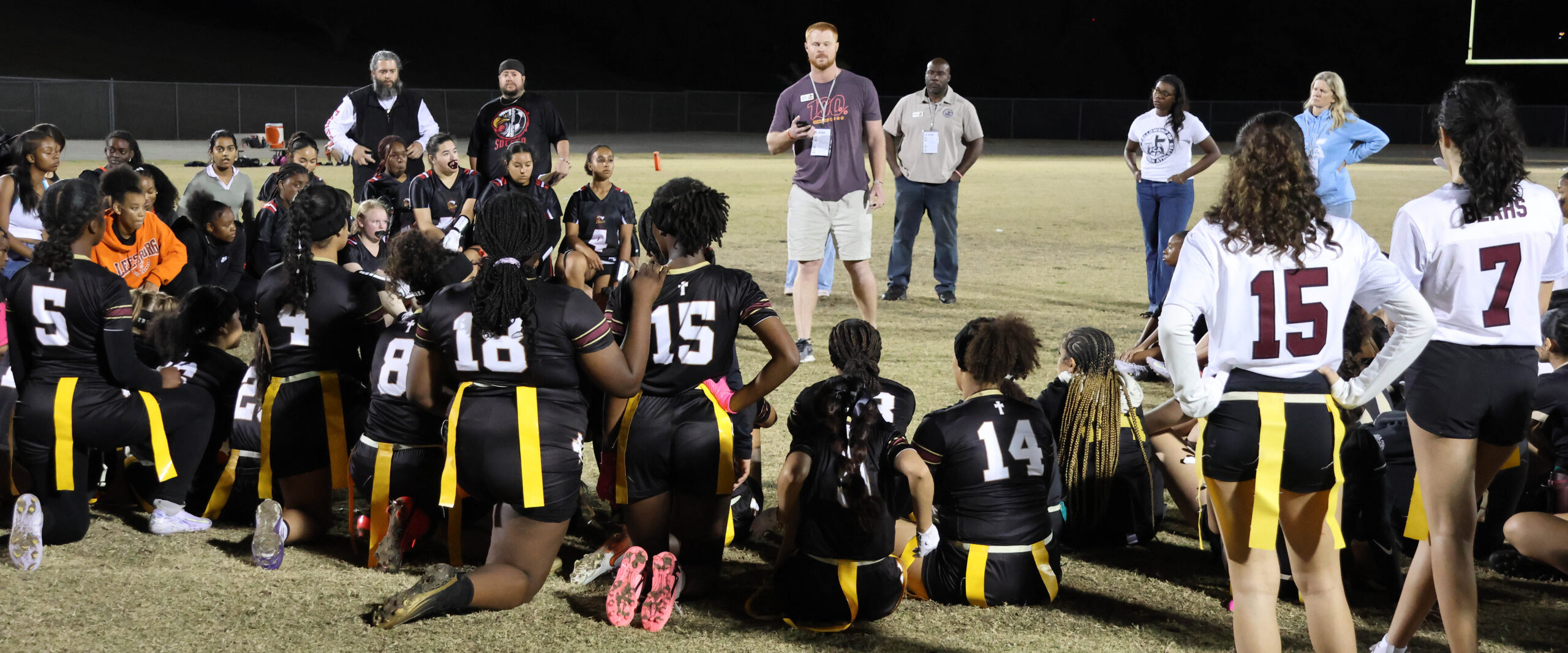 Metro Area Director Kahlil Tucker known as “Coach Tuck,” organized this inaugural Jamboree and this new girls league. He is a former athlete and FCA member who uses athletics as a platform to share the gospel while supporting student-athletes spiritually and relationally. Coach Tuck, is Director for Lake & Sumter Fellowship of Christian Athletes. He has a deep passion for FCA. His own faith was significantly influenced by his involvement with the organization, and that experience now drives his ministry leadership and commitment to helping others connect with Christ. “Strategy is how we do it,” Coach Tuck says. “The E3 discipleship strategy engages coaches and athletes with the Good News, equips them with God’s Word and empowers them to live out the Great Commission as disciple-makers, generation after generation.” Tuck adds, “This is a wonderful opportunity to get students started on the right foot, while learning and playing flag football. Plus, we get to share our inspirational messages. We lead each school’s coaches and athletes into positive new relationships with each other as well as with Jesus Christ and His church.”