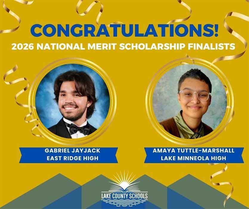 Congratulations to Gabriel Jayjack of East Ridge High and Amaya Tuttle-Marshall of Lake Minneola High! They have advanced to Finalist standing in the 2026 National Merit Scholarship Program, a distinction that places them in a group of more than 15,000 students representing fewer than 1% of U.S. high school graduating seniors!