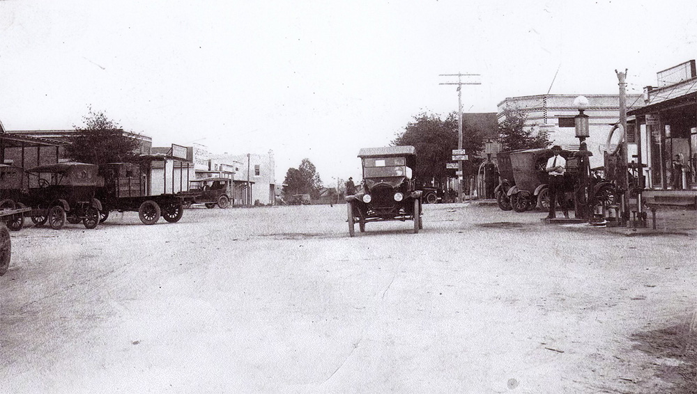 This 1915 snapshot is looking east on the main street (State Road 50). The building to the right is the original Edge Mercantile building with gas pumps in front of it, today it is the spot of the Family Dollar (furnished by the Groveland Historical Society)