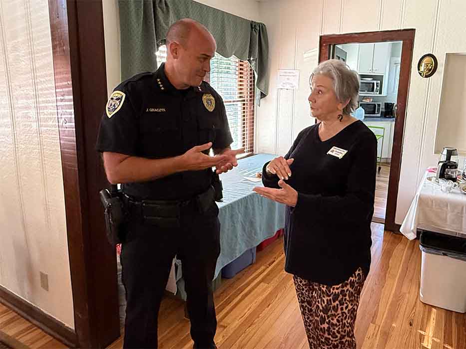 Guests were treated with delicious breakfast refreshments provided by members of the club while Clermont police officers were on hand to answer questions or discuss community affairs with the public. The historical building, that is home to the Woman’s Club organization that was chartered in 1927, has become a favorite annual location for the Coffee with a Cop program. The building, built in 1921 as a motor camp building, retains much of its original interior woodcraft design and floor plan that rings-in a welcoming atmosphere to those who enter the cozy clubhouse.