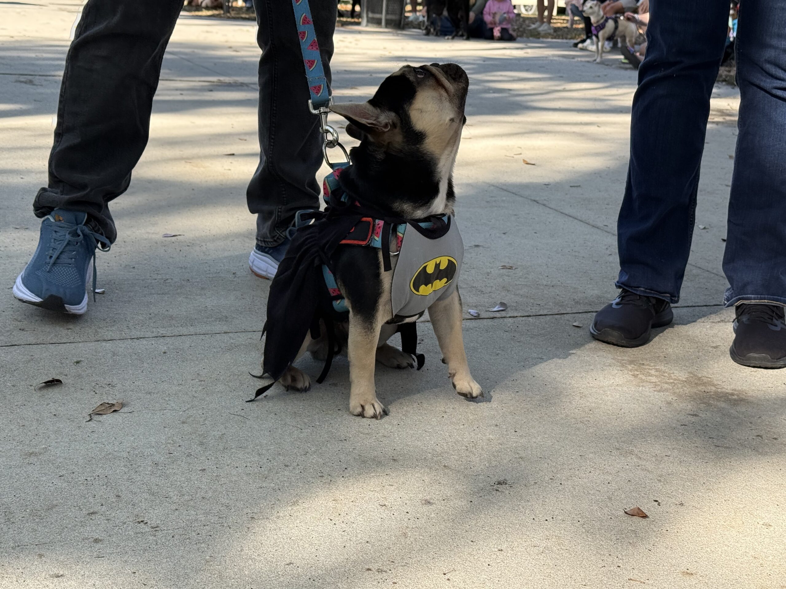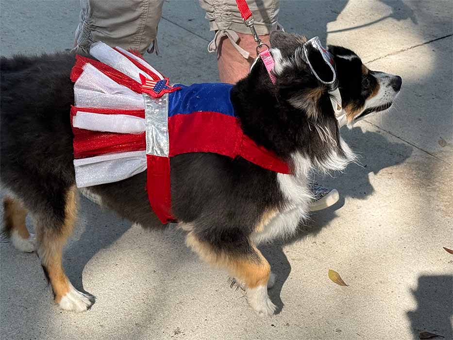 The annual costume contest themed this year as “Su-Paw-Heros,” brought out 16 entries. Costumes and supporting props encouraged the best in handler imagination and creativity as the pups strutted their stuff down the grassy runway. The contest was led by Master of Ceremonies, Jay Peterson of Jayslights, along with a panel of judges composed of representatives from the community, including Pat Caracciolo, Clermont Police Officer Erin Razo, and Chuck Seaver. All the costumed cuties were winners in the judge’s eyes but three “pawmazing” pups stood out in categories that included Best Overall, Most on Theme, and Most Creative.