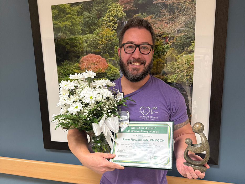 At Orlando Health South Lake Hospital, excellence in patient care is more than a goal—it’s a daily commitment demonstrated by its dedicated nursing staff. Recently, that commitment was exemplified as Ryan Flowers, RN, was honored with the prestigious DAISY Award, a national recognition celebrating extraordinary nurses.