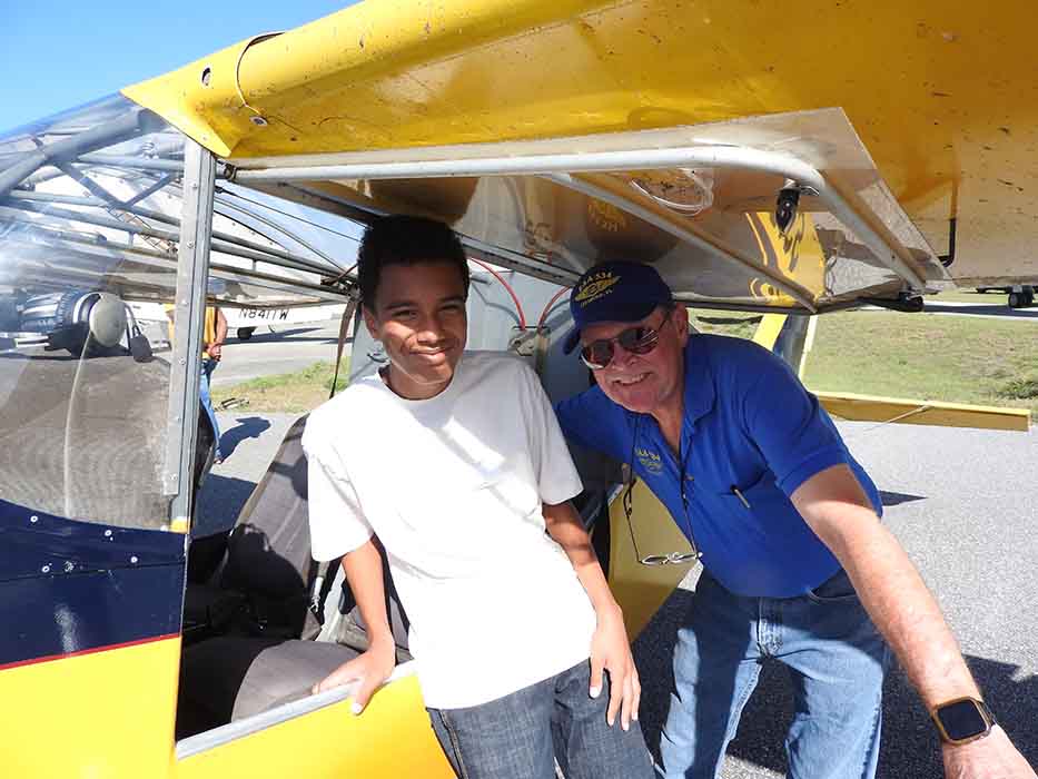 Young Eagle Mark Herzog and Chapter 534 pilot and VP John Weber get ready to head for the wild blue yonder for a Young Eagle flight.