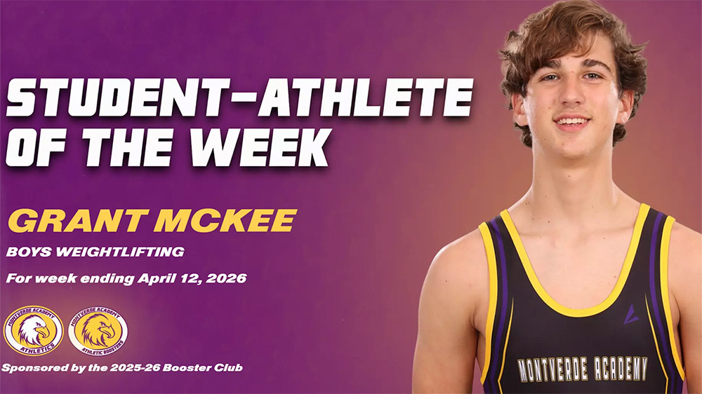 Montverde Academy is proud to announce that boys’ weightlifting team member Grant McKee is this week’s Student-Athlete of the Week following a dominant performance at the FHSAA Class 1A District 11 Championship held at Foundation Academy.