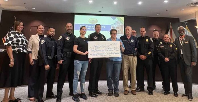 The Clermont Police Department recently presented a check for $20,700 to Central Florida C.O.P.S. and Code 4 Initiative. The funds were raised during the department’s annual Honoring the Fallen 5K, held this past February.
