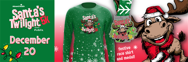 Join the fun at this holiday themed 5K night run in Historic Downtown Clermont . All participants will receive a really cool long-sleeved shirt, holiday themed finisher medal, glow sticks for the run, holiday cookies and hot chocolate at the finish, free race photos, and more!