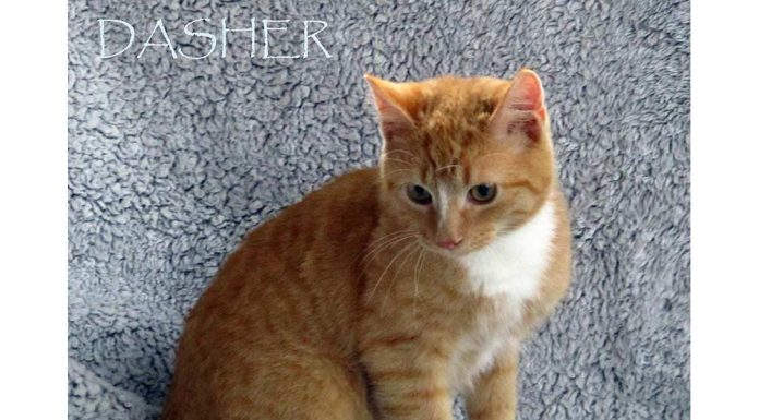My name is Dasher, and I am a handsome 5-month-old Domestic Shorthair Blend. I am a bashful guy at first...