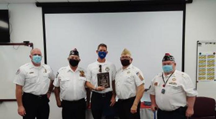 VFW Commander Ron Chappo, Quartermaster Bob Farrell and Honor guardsman Fred Thomas recently attended an awards ceremony at the main firehouse in Clermont.