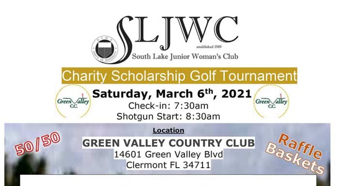 The South Lake Junior Woman's Club is hosting a Charity Scholarship Golf Tournament on Saturday, March 6th at Green Valley Country Club, Groveland.