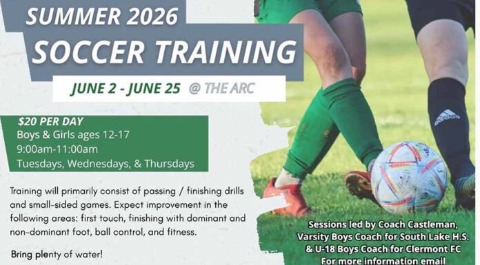 The City of Clermont is offering summer soccer training at the Clermont Arts and Recreation Center for boys and girls ages 12-17.